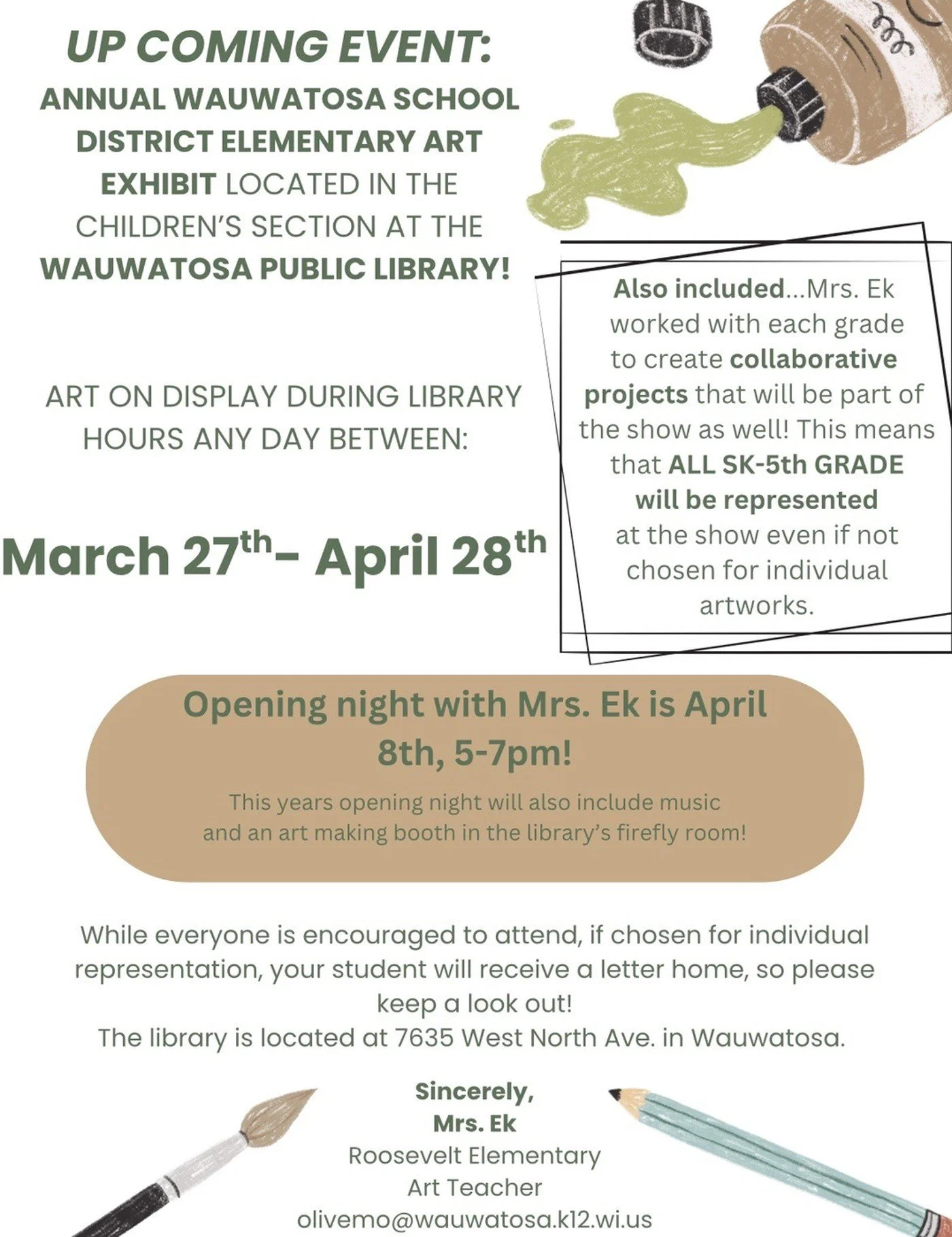 📍 Wauwatosa Montessori School, 12121 W. North Ave.