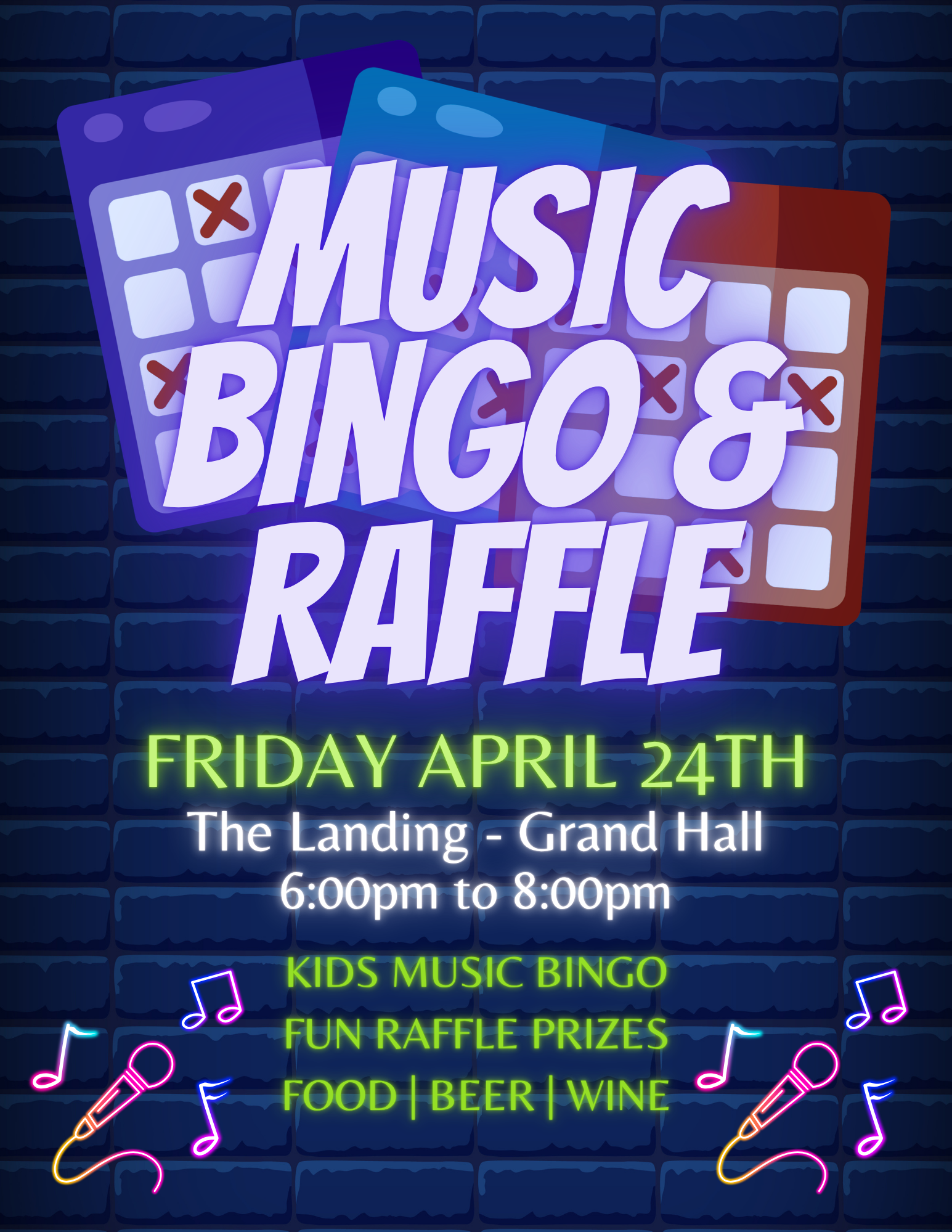 Join us for a fun night of kids music bingo and raffle at the Grand Hall at The Landing!! Bring the whole fam!